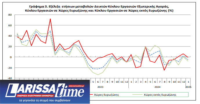 Η μείωση του Γενικού Δείκτη Κύκλου Εργασιών Εξωτερικής Αγοράς κατά 4,8% τον μήνα Ιανουάριο 2025, σε σύγκριση με τον αντίστοιχο δείκτη του Ιανουαρίου 2024, προήλθε: