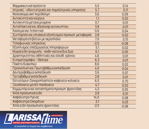 Ακόμη, σημειώθηκε αύξηση 14% στα ασφάλιστρα υγείας, 12,4% στο πετρέλαιο θέρμανσης και 8,6% στο πακέτο διακοπών.