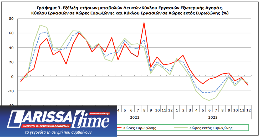 Η μείωση του Γενικού Δείκτη Κύκλου Εργασιών Εξωτερικής Αγοράς κατά 10,3% τον μήνα Δεκέμβριο 2023, σε σύγκριση με