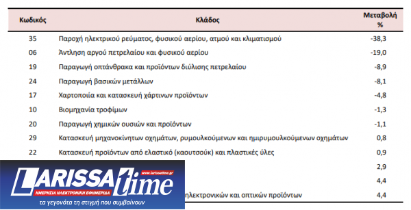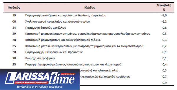 Στη μείωση του Γενικού Δείκτη Τιμών Εισαγωγών (σύνολο αγοράς) κατά 8,7% συνέβαλαν κυρίως οι μεταβολές των δεικτών