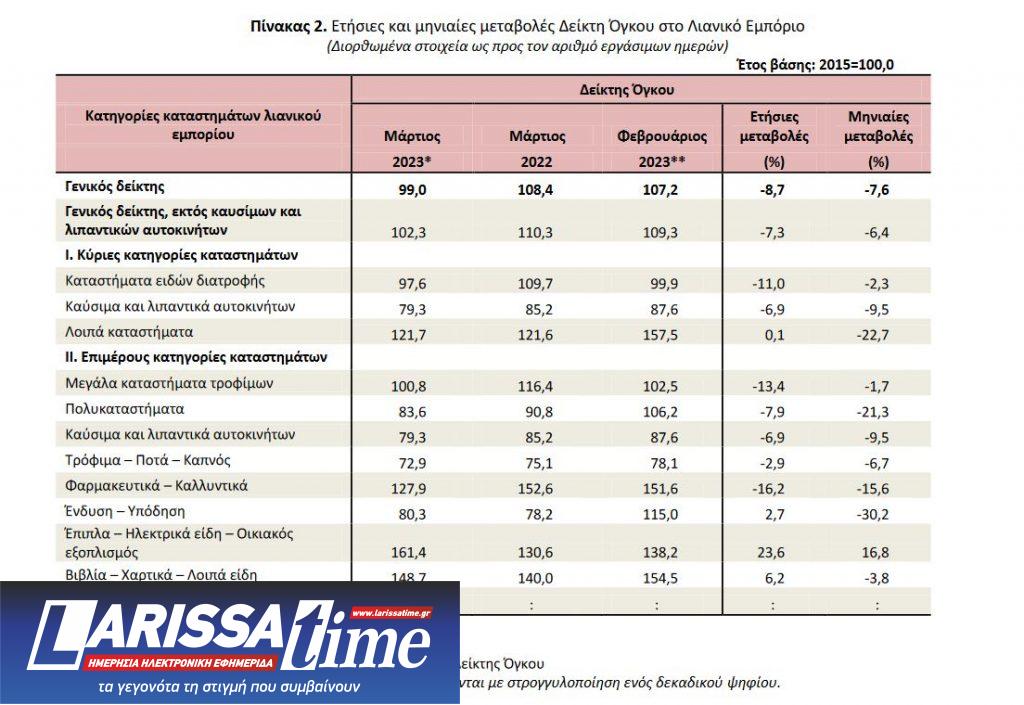Αναφορικά με την πορεία των υποκλάδων του λιανικού εμπορίου, στη συντριπτική του πλειονότητα σημείωσαν μικρότερη ή μεγαλύτερη αύξηση στις πωλήσεις κατ’ όγκο, μόνο τα πολυκαταστήματα εμφάνισαν σημαντική μείωση σε ποσοστό 7,3%. Αντίθετα, η κατηγορία «ένδυση – υπόδηση» παρουσίασε τη μεγαλύτερη άνοδο τον εν λόγω μήνα (+7,1%).