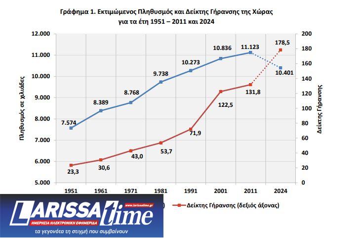 14 ετών) ανήλθε σε 178,5. Πρόκειται για έναν δείκτη που ακολουθεί σταθερά ανοδική πορεία, αντιστρόφως ανάλογη με την αναλογία θανάτων-γεννήσεων. Ενδεικτικά, από το 2011 ο δείκτης γήρανσης αυξήθηκε κατά 47 μονάδες, ενώ έχει υπερ-τριπλασιαστεί σε σχέση με το 1981 (53,7 μονάδες).