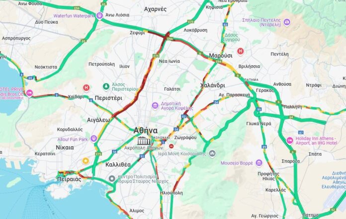 άνω των 30’ από κόμβο Δημοκρατίας μέχρι κόμβο Πεντέλης.