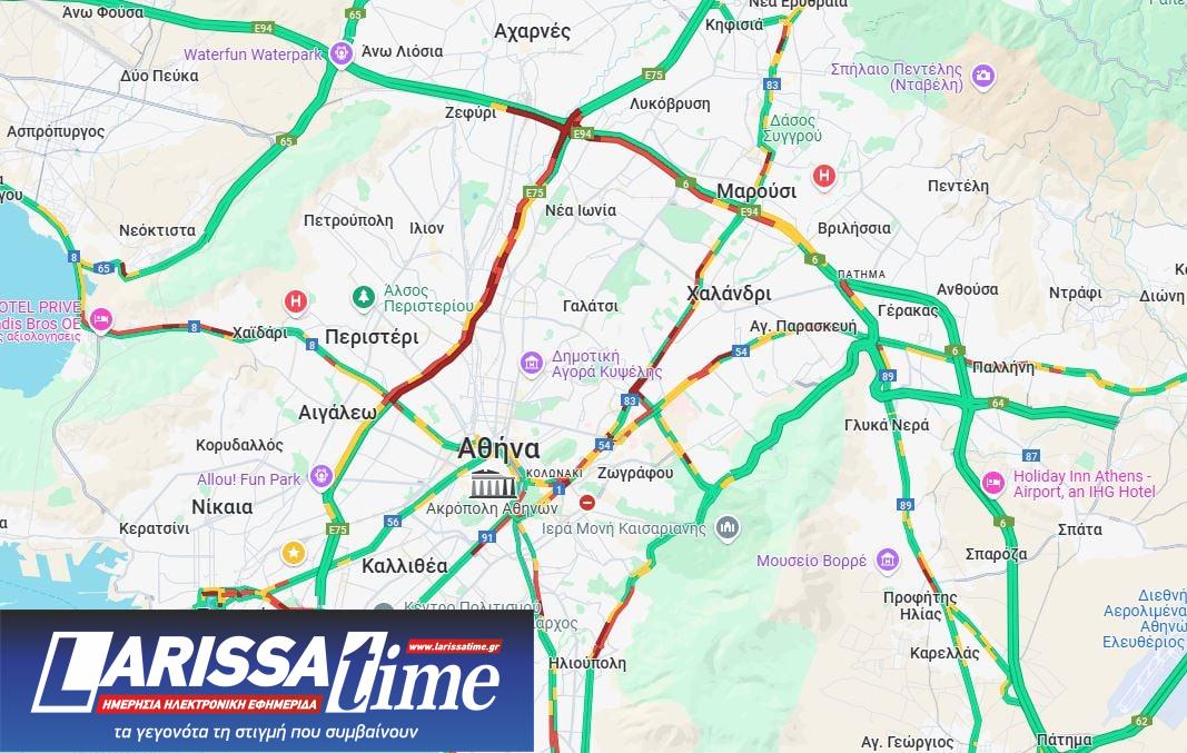 άνω των 30’ από κόμβο Δημοκρατίας έως κόμβο Πεντέλης.