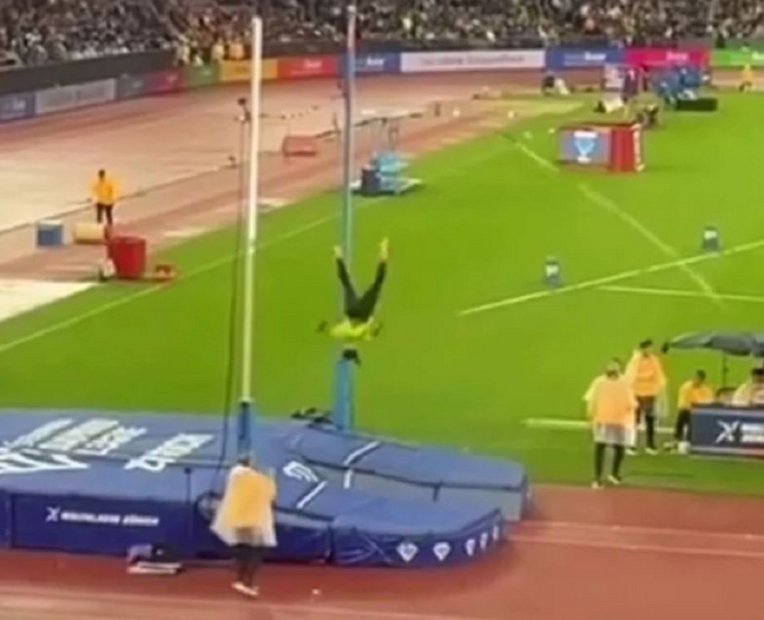 Μάλιστα, όπως φαίνεται στο βίντεο που ανέβασε ο Μανόλο στο Ιnstagram, έβαλε το κοντάρι στη βαλβίδα, αυτό γλίστρησε με αποτέλεσμα να κάνει μια εναέρια κωλοτούμπα και να προσγειωθεί στο στρώμα.
