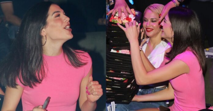 Η Μελίνα για τη νυχτερινή της έξοδο επέλεξε ένα απίθανο pink μίνι dress που διέγραφε την άψογη σιλουέτα της ενώ υπέροχες ήταν και οι στιγμές τόσο με τον Λευτέρη Πανταζή να της αφιερώνει τα τραγούδια του όσο και με την Έλλη Κοκκίνου να την αγκαλιάζει από την πίστα.