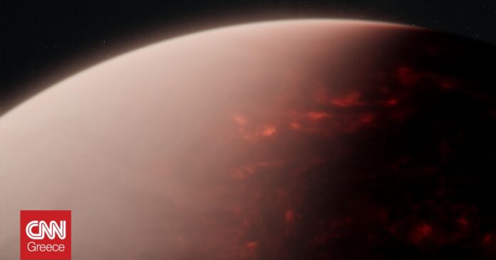 Η μεγαλύτερη έκπληξη, ωστόσο, προέκυψε από τις παρατηρήσεις του James Webb. Το όργανο NIRSpec (Φασματογράφος Εγγύς Υπέρυθρου) μέτρησε τη θερμοκρασία της φωτεινής πλευράς του πλανήτη, υπολογίζοντας πόσο μειώνεται το φως όταν ο TOI-561 b περνά πίσω από το άστρο του. Με βάση τη μικρή του απόσταση, αν επρόκειτο για έναν γυμνό βραχώδη πλανήτη, η θερμοκρασία θα έπρεπε να αγγίζει τους 2.700 βαθμούς Κελσίου. Αντί γι’ αυτό, μετρήθηκαν περίπου 1.800 βαθμοί Κελσίου.
