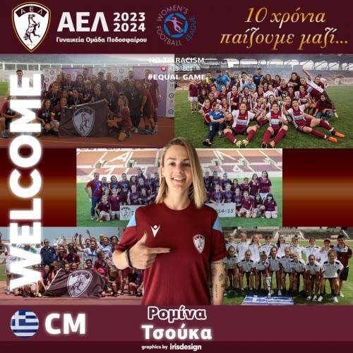 Η γυναικεία ομάδα ποδοσφαίρου της ΑΕΛ ανακοινώνει την μεταγραφή της Ρομίνας Τσούκα από τις Ελπίδες Καρδίτσας. Η Λαρισαία έμπειρη μέσος, επιστρέφει στην ομάδα από την οποία ξεκίνησε μετά από σχεδόν 5 χρόνια. Πρόκειται για μία μεταγραφή ουσίας, στην προσπάθεια που κάνει η ομάδα για την παραμονή στην κατηγορία. Η ΑΕΛ οφείλει να ευχαριστήσει τις Ελπίδες Καρδίτσας για την συνεργασία τους στην ολοκλήρωση της μεταγραφής.