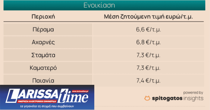 Για όσους ενδιαφέρονται για ενοικίαση κατοικίας, οι πιο χαμηλές μέσες ζητούμενες τιμές στην Αττική καταγράφονται στο Πέραμα, στα Προάστια του Πειραιά, καθώς και στις Αχαρνές, τη Σταμάτα, το Καματερό και την Παιανία. Οι περιοχές αυτές συνεχίζουν να προσελκύουν ενδιαφέρον από όσους αναζητούν οικονομική κατοικία εντός της Αττικής, χάρη στον συνδυασμό χαμηλών τιμών και των αναπτυσσόμενων τοπικών αγορών.