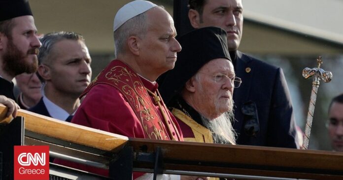 Σε μία ιστορική τελετή για να τιμήσουν τη συμπλήρωση των 1.700 ετών από την Α’ Οικουμενική Σύνοδο μεταξύ Ορθοδόξων και Καθολικών όπου διαμορφώθηκε το Σύμβολο της Πίστεως (το «Πιστεύω»), πραγματοποιείται το κοινό προσκύνημα του Οικουμενικού Πατριάρχη Βαρθολομαίου και του Πάπα Λέοντα του ΙΔ΄, κοντά στις αρχαιολογικές ανασκαφές της αρχαίας Βασιλικής του Αγίου Νεοφύτου, νότια της Κωνσταντινούπολης.