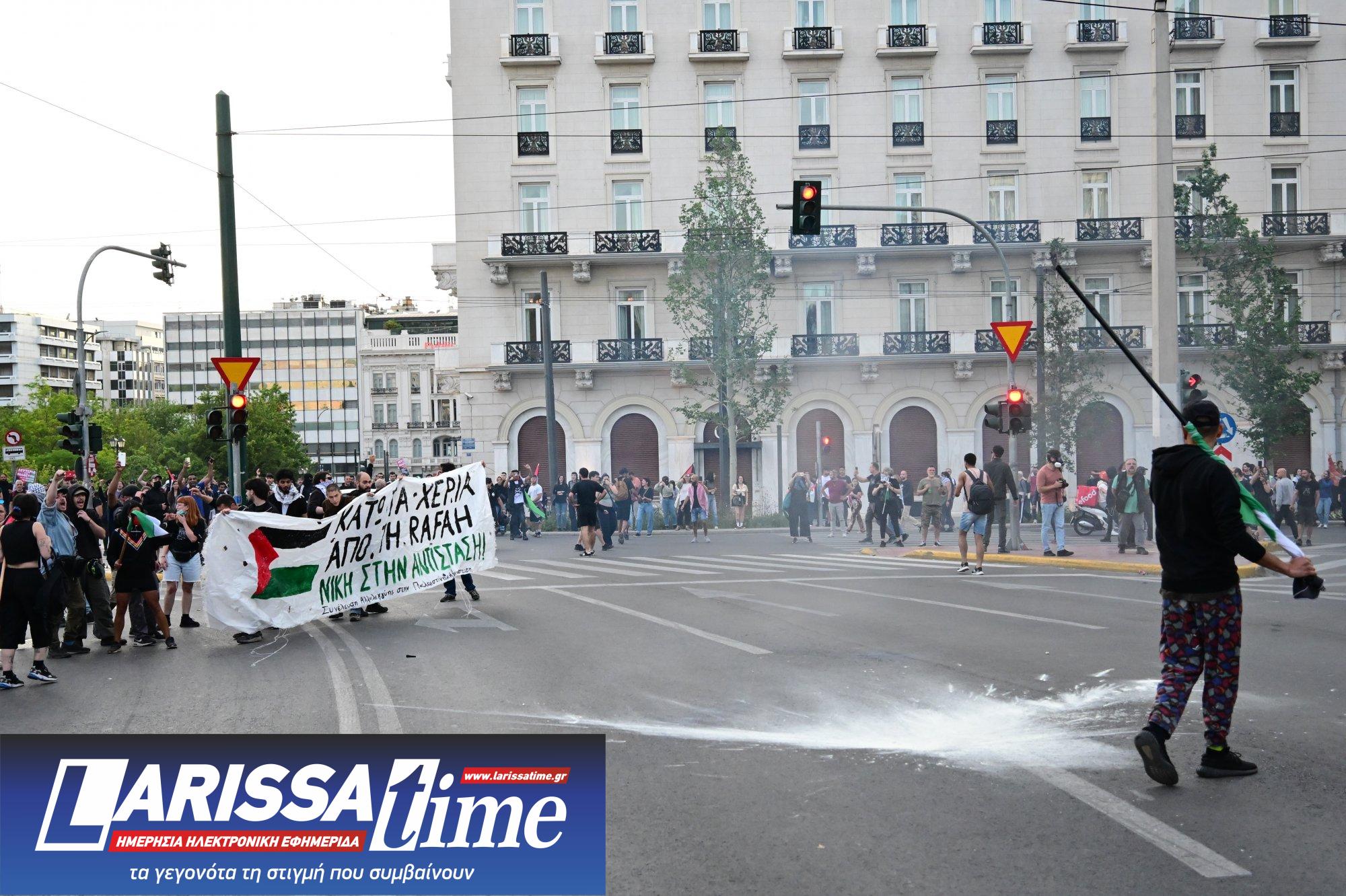 Ένταση επικράτησε στην πλατεία Συντάγματος κατά τη διάρκεια συγκέντρωσης συμπαράστασης στην Παλαιστίνη.
