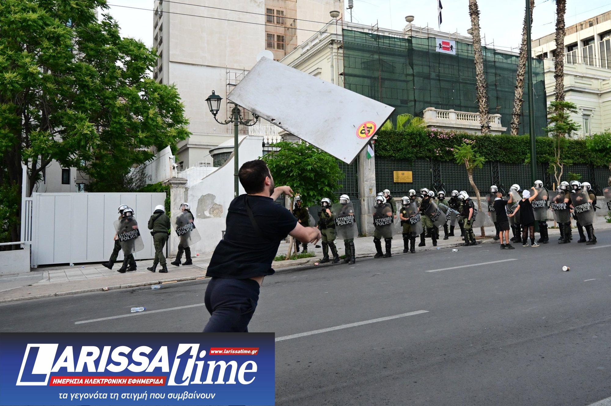 Όπως φαίνεται και στις φωτογραφίες ακολούθησαν συμπλοκές σώμα με σώμα διαδηλωτών και αστυνομικών
