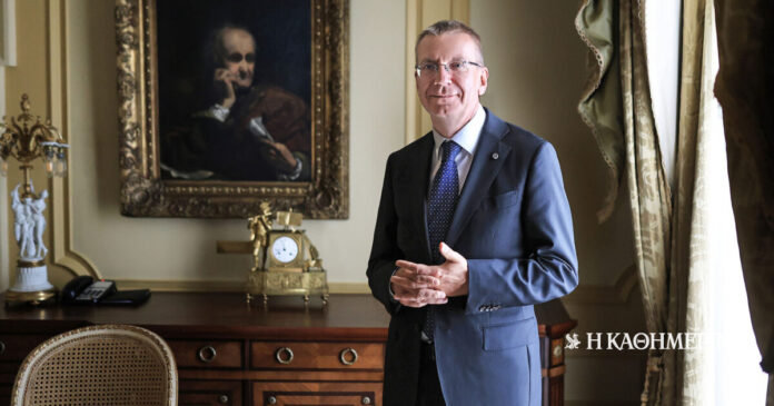 – Η τελευταία κρατική επίσκεψη Λετονού προέδρου στην Αθήνα ήταν το 2002. Ο τελευταίος Ελληνας πρόεδρος επισκέφθηκε τη Λετονία μόλις το 2022. Αυτή η ανταλλαγή επισκέψεων υψηλού επιπέδου μεταξύ των δύο χωρών καταδεικνύει ότι είμαστε έθνη με παρόμοιες ιδέες. Είχαμε πολύ καλές συζητήσεις με την Πρόεδρο, τον πρωθυπουργό, τον πρόεδρο της Βουλής για διάφορα διμερή θέματα, ενίσχυση των οικονομικών δεσμών, τον τουρισμό. Αλλά το μεγαλύτερο μέρος της συζήτησης αφιερώθηκε σε θέματα της Ε.Ε. Τόσο η Λετονία όσο και η Ελλάδα προστατεύουν τα εξωτερικά σύνορα της Ε.Ε. Βλέπουμε πολλά θέματα με τον ίδιο τρόπο. Θέλουμε να εξασφαλίσουμε περισσότερη ευρωπαϊκή χρηματοδότηση για την ασφάλεια των εξωτερικών συνόρων, περισσότερες ευρωπαϊκές αμυντικές δαπάνες. Συζητάμε επίσης τη διεύρυνση της Ε.Ε. στα Δυτικά Βαλκάνια. Συμφωνούμε ότι η Ε.Ε. δεν μπόρεσε να αξιοποιήσει τις ευκαιρίες στο παρελθόν και αντιμετωπίζουμε αυτή την πιο δύσκολη κατάσταση στα Δυτικά Βαλκάνια από ό,τι πριν από 10 ή 20 χρόνια. Οπου δεν είμαστε παρόντες ως Ε.Ε., κάποιος άλλος είναι παρών. Φυσικά, για την Ουκρανία και οι δύο χώρες μας έχουν παράσχει κάθε είδους υποστήριξη.