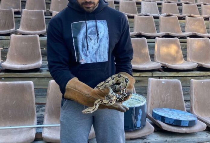 Αναστάτωση προκλήθηκε στο θέατρο της Δώρας Στράτου στου Φιλιπάππου όταν περαστικοί εντόπισαν έναν βόα σφιγκτήρα κάτω από κάθισμα.
