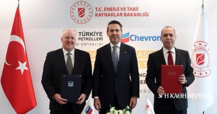 Η Κωνσταντινούπολη, όπου –όπως η «Κ» είχε προαναγγείλει εδώ και μήνες– επισημοποιήθηκε συμφωνία για συνεργασία στον τομέα των ερευνών και γεωτρήσεων στο πεδίο των υδρογονανθράκων ανάμεσα στην Τουρκική Εταιρεία Πετρελαίου (ΤΡΑΟ) και στον αμερικανικό κολοσσό Chevron. Οπως μεταδίδει ο ανταποκριτής της «Κ» στην Κωνσταντινούπολη Μανώλης Κωστίδης, ο υπουργός Ενέργειας της Τουρκίας Αλπαρσλάν Μπαϊρακτάρ δήλωσε ότι θα διεξαγάγουν κοινές δραστηριότητες εξερεύνησης και παραγωγής μέσω συμφωνίας συνεργασίας με την αμερικανική Chevron, προσθέτοντας: «Εχουμε καταλήξει σε σημείο συμφωνίας με δύο ξεχωριστές διεθνείς εταιρείες αυτόν τον μήνα. Θα τις μοιραστούμε και με το κοινό. Θα υπογράψουμε πιο συγκεκριμένα, συγκεκριμένα έργα μαζί τους». Ο κ. Μπαϊρακτάρ τόνισε ότι στόχος της ΤΡΑΟ «είναι να γίνουμε μια εταιρεία με χωρητικότητα 1 εκατ. βαρελιών μέσα στα επόμενα χρόνια». H Chevron δείχνει τους τελευταίους μήνες μια πολύ σημαντική κινητικότητα στην περιοχή (Ελλάδα, Τουρκία, Λιβύη), κάτι που σίγουρα γίνεται σε πλήρη συνεννόηση και ευθυγράμμιση με την κυβέρνηση Τραμπ.