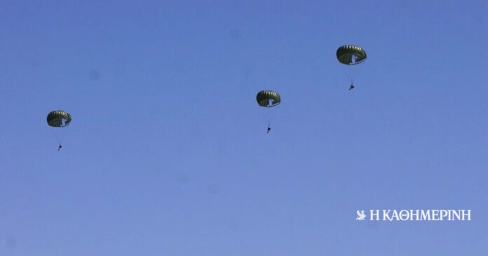 Χθες το μεσημέρι οι οδηγοί που είχαν την ατυχία να βρίσκονται μποτιλιαρισμένοι στην εθνική οδό από το ύψος της Βαρυμπόμπης έως την έξοδο για την Αττική Οδό απόλαυσαν τουλάχιστον εναέριο θέαμα. Διότι εκείνη την ώρα ελικόπτερα Σινούκ άρχισαν να πετούν σε ορατή απόσταση από το μαρτυρικό «ποτάμι» και σε σχετικά χαμηλό ύψος. Τα ελικόπτερα μετέφεραν αξιωματικούς και υπαξιωματικούς των Ενόπλων Δυνάμεων, οι οποίοι έκαναν άλμα με αλεξίπτωτο στο αεροδρόμιο του Τατοΐου, προσφέροντας στους εγκλωβισμένους οδηγούς ένα όμορφο θέαμα. Τα άλματα «συντήρησης ικανότητας» αλεξιπτωτιστή συνήθως γίνονται πάνω από το αεροδρόμιο της Ελευσίνας, αλλά με τόση βροχή που έπεσε τις προηγούμενες ημέρες κρίθηκε ότι στο Τατόι τουλάχιστον τα αλεξίπτωτα δεν θα μοιάζουν με… φακελάκια τσαγιού μετά το άλμα.