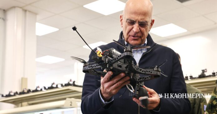 Από τα πιο χαμογελαστά κυβερνητικά πρόσωπα ήταν χθες ο Νίκος Δένδιας, βλέποντας και περιγράφοντας τα νέα που είχε να πει ως υπουργός Εθνικής Αμυνας με αφορμή την επίσκεψή του στο 306 Εργοστάσιο Βάσης Τηλεπικοινωνιών στις Αχαρνές, όπου λειτουργεί το συνεργείο κατασκευής συστημάτων μη επανδρωμένων αεροσκαφών, αλλά και από την επικοινωνία που είχε παράλληλα με το 316 Συνεργείο Περιοχής Τεχνικού στους Τοξότες Ξάνθης: «Εδώ, όπως και στο 316 Εργοστάσιο στην Ξάνθη, βλέπουμε να υλοποιείται ένα μεγάλο βήμα για τη μετάβαση των Ενόπλων Δυνάμεων της πατρίδας μας στη νέα εποχή. Εχουν δημιουργηθεί εδώ δύο εργοστάσια παραγωγής drones. Επίσης, είμαστε και στη διαδικασία κατασκευής κινητών μονάδων παραγωγής που θα συνοδεύουν σε ορατό χρόνο όλες τις ταξιαρχίες του Ελληνικού Στρατού. Κάθε ταξιαρχία θα μπορεί να παράγει και να επισκευάζει drones επιτόπου», πρόσθεσε, για να συμπληρώσει: «Η πατρίδα μας, για να μπορέσει να έχει μια αξιόπιστη δύναμη αποτροπής, πρέπει να προσαρμοστεί στις νέες δυνατότητες. Αυτό κάνει το προσωπικό των Ενόπλων Δυνάμεων, αναπτύσσοντας ίδιες δυνατότητες παραγωγής drones και αντι-drones συστημάτων, ώστε να μην είμαστε στο έλεος ξένων προμηθευτών, να μη χρειάζεται μόνο να προμηθευόμαστε από ξένα “ράφια” και να δαπανάμε έτσι το υστέρημα του Ελληνα φορολογουμένου στο εξωτερικό».