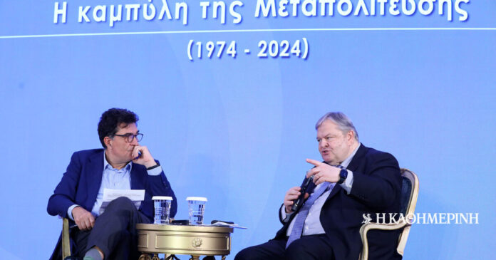 Ο Ευάγγελος Βενιζέλος στη συζήτηση που είχε χθες το βράδυ με τον διευθυντή της «Κ» Αλέξη Παπαχελά για τα μεγάλα δίπολα της πεντηκονταετίας ως οιωνούς για το μέλλον έκανε μια μεγάλη αναδρομή από το 1974. Θυμήθηκε πως στα 17 του προετοιμαζόταν να δώσει εξετάσεις για τη Νομική όταν έπεφτε η χούντα αλλά και τα πρώτα χρόνια του στην πολιτική. Αναφερόμενος στην κρίση θυμήθηκε την ομιλία του Κώστα Σημίτη στη Βουλή. «Αληθεύει ότι ο Κώστας Σημίτης τον Δεκέμβριο του 2008 μίλησε στη Βουλή για τον κίνδυνο προσφυγής στο ΔΝΤ. Το είπε αυτό ο Κώστας Σημίτης, αλλά εκείνη τη στιγμή ήταν ανεξάρτητος βουλευτής που είχε διαγραφεί από την Κ.Ο. του ΠΑΣΟΚ. Και όταν το είπε αυτό ήμασταν το πολύ πέντε βουλευτές που τον άκουσαν». Ο κ. Βενιζέλος ανέφερε, ακόμα, ότι «ο κίνδυνος να βρεθούμε σε δημοσιονομικό αδιέξοδο είναι πάντα παρών». Ενώ υπογράμμισε ότι η κρίση θα έπρεπε να μας διδάξει ότι είναι απαραίτητες οι αντικυκλικές πολιτικές. Και αυτό μπορεί να γίνει μόνο «όταν παίρνεις αποφάσεις που δεν είναι μόνο συγκυριακές». Ανάμεσα σε πολλά απ’ όσα είπε, ο κ. Βενιζέλος έκλεισε με μια αποστροφή για το ΤikTok. «Δεν το δοκίμασα το ΤikTok. Γενικά θεωρώ ότι είμαι ευτυχής διότι έχω απαλλαγεί από καταναγκασμούς να υποδύομαι οτιδήποτε. Στο ΤikTok οι πολιτικοί υποδύονται προκειμένου να γίνουν συμπαθείς. Η μήτρα του λαϊκισμού είναι η προσπάθεια να γίνεις συμπαθής».