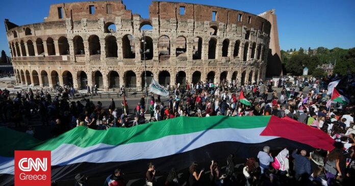 Ένα ανθρώπινο ποτάμι κατέκλυσε τους δρόμους της Ρώμης σε διαδήλωση υπέρ του παλαιστινιακού λαού και του Gaza Sumud Flottilla που συγκέντρωσε πάνω από ένα εκατομμύριο πολίτες.