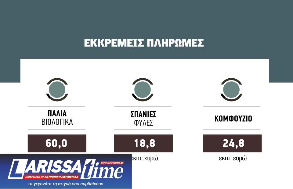 Στο πλάνο να πληρωθούν πριν τον Αύγουστο (κανονικά στις 30 Ιουνίου), είναι και τα νέα βιολογικά φυτικής παραγωγής 2024 συνολικού ύψους 130 εκατ. ευρώ. Εδώ πάντως σ’ αυτή τη φάση, κανείς δεν βάζει το χέρι στη φωτιά για το αν και πότε πρόκειται να πληρωθούν.