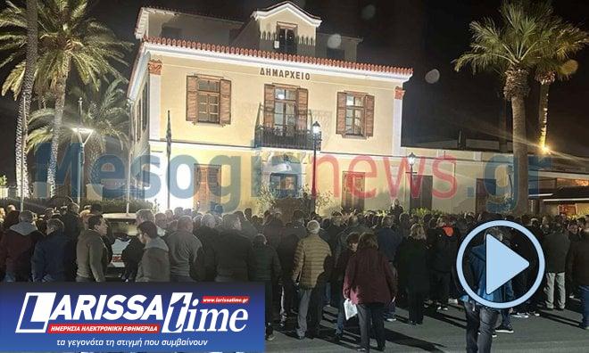 Στη συνέχεια, οι κάτοικοι συγκεντρώθηκαν έξω από το δημαρχείο, συνεχίζοντας τη διαμαρτυρία τους.