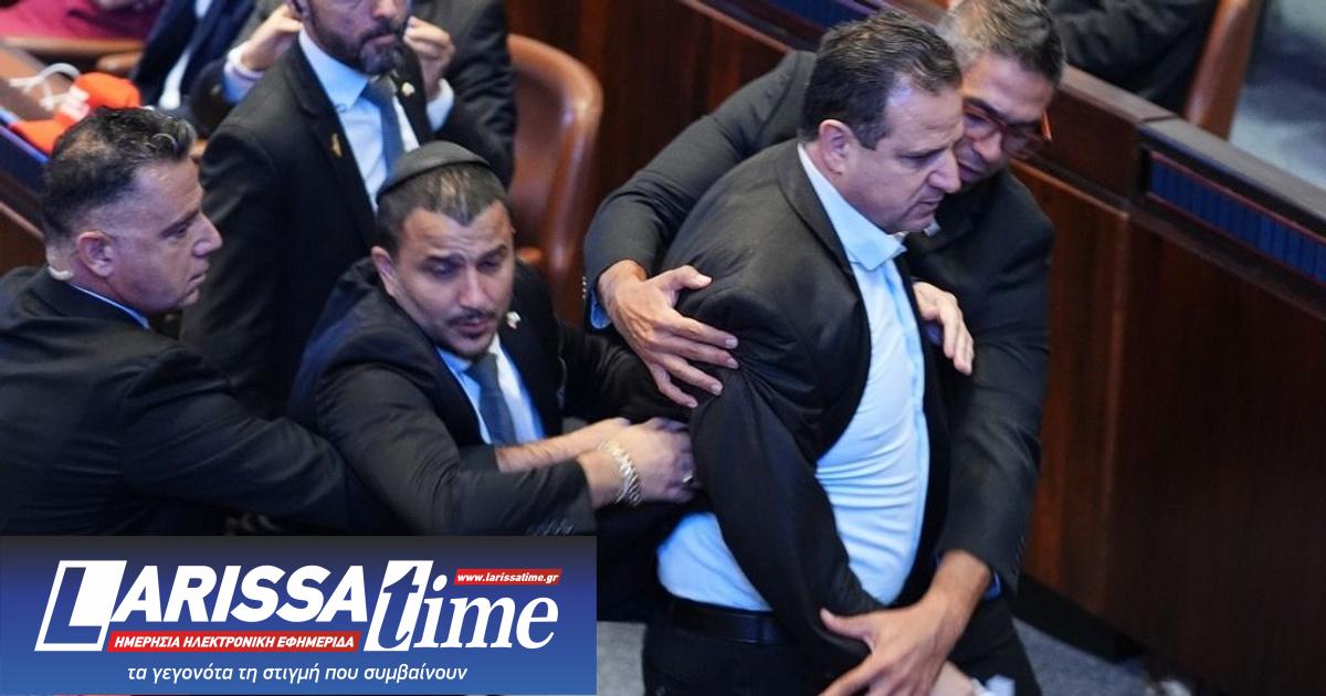 Επίσης, απομακρύνθηκε ο Όφερ Κασίφ, μετά από φωνές προς τον Τραμπ, ενώ ένας από τους βουλευτές κρατούσε χαρτί με μήνυμα υπέρ της αναγνώρισης παλαιστινιακού κράτους.