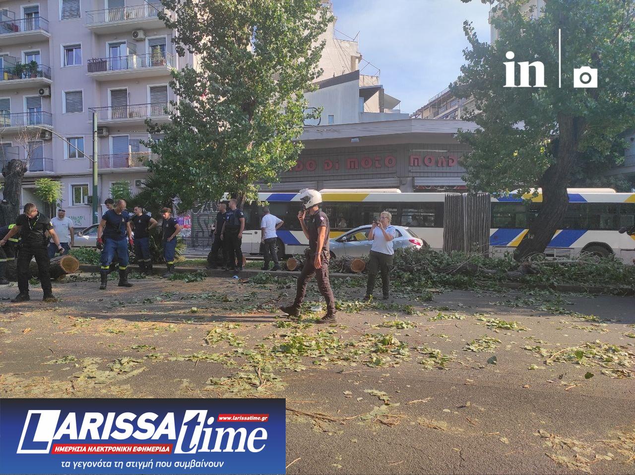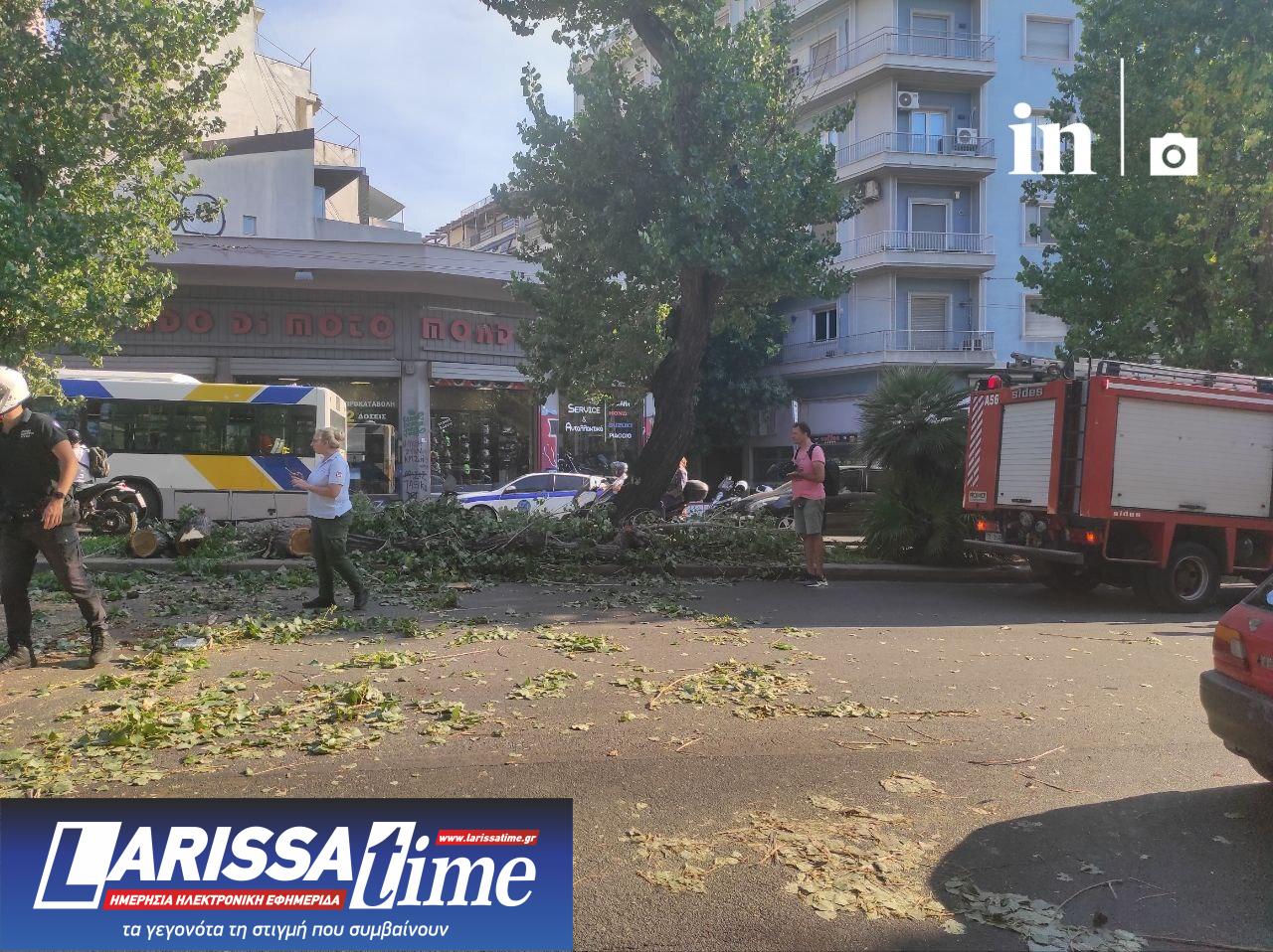 Χρήστης του «X»  (πρώην twitter) ανέβασε μια φωτογραφία, ενημερώνοντας ότι το δένδρο έπεσε πάνω σε αυτοκίνητα και μια μηχανή, τραυματίζοντας τον οδηγό του δικύκλου.