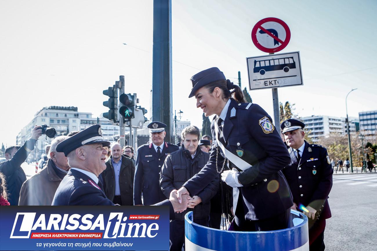 Ευχές αντάλλαξε με την τροχονόμο και ο αρχηγός της Ελληνικής Αστυνομίας.