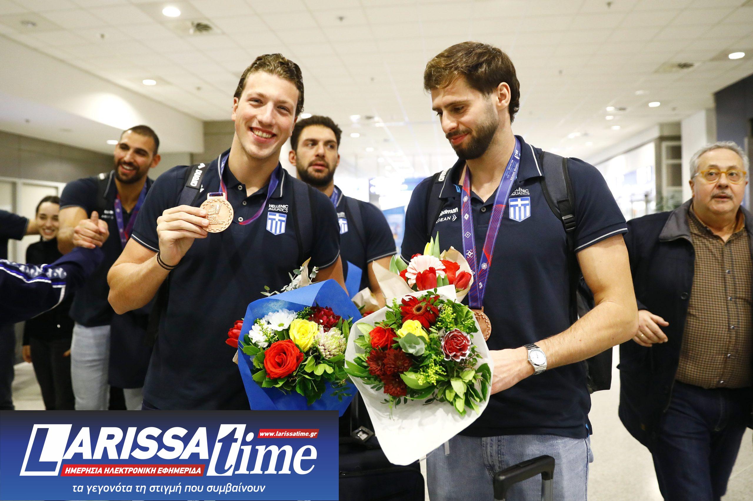Το απόγευμα της Δευτέρας οι Έλληνες πολίστες προσγειώθηκαν στο “Ελευθέριος Βενιζέλος” με τα μετάλλια στο στήθος. Στο πλευρό τους βρέθηκαν συγγενείς, σύντροφοι και αγαπημένα πρόσωπα, που τους υποδέχθηκαν με θερμό χειροκρότημα.
