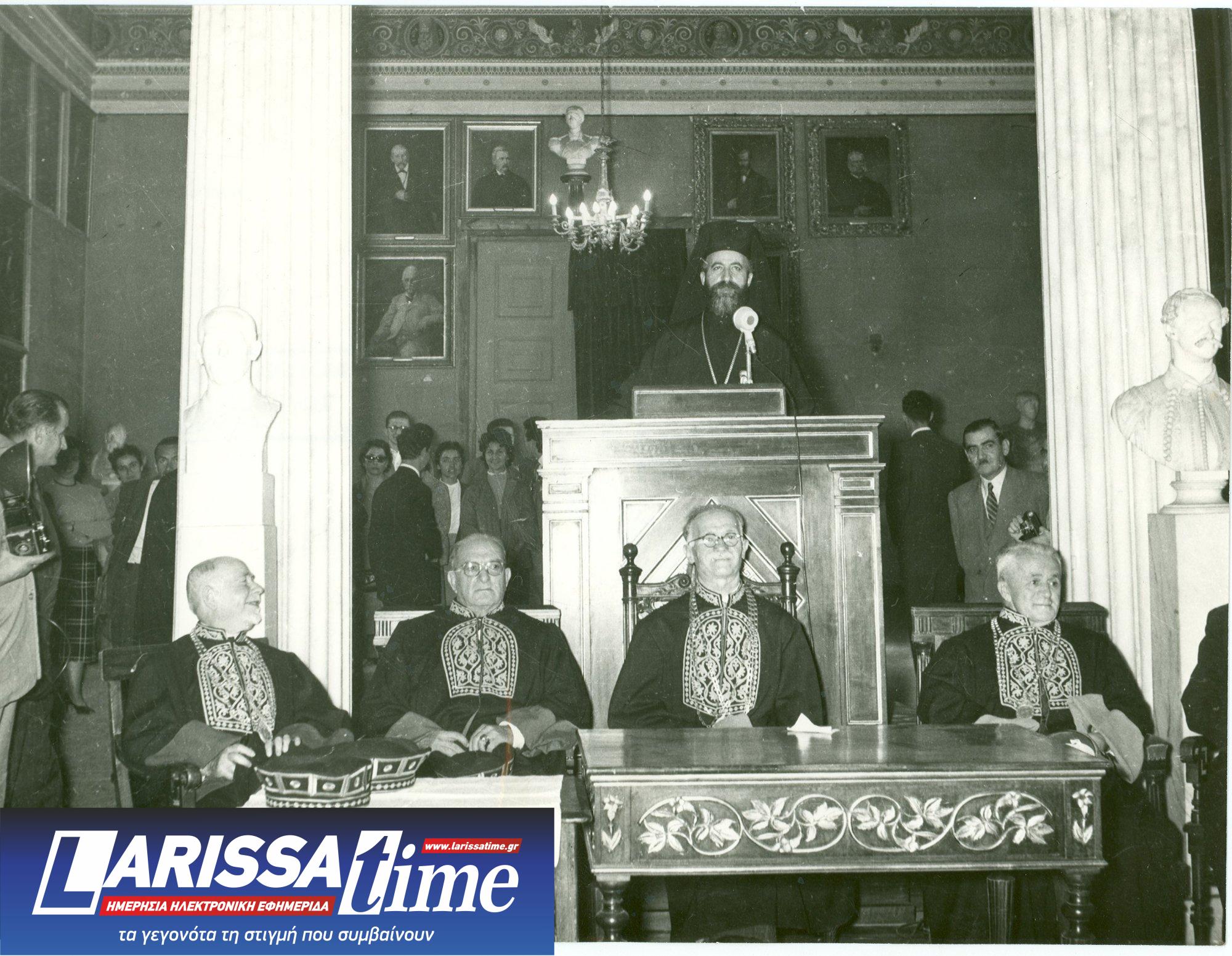 Ο Αρχιεπίσκοπος Μακάριος στο βήμα της αίθουσας τελετών του Πανεπιστημίου (1956)