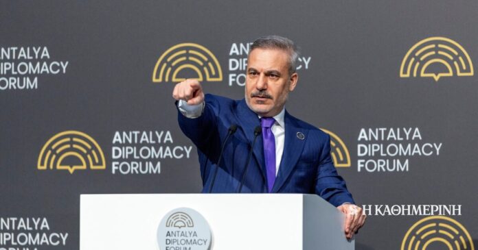 Ως ένα ακόμη επεισόδιο του μαραθώνιου διπλωματικού μπρα ντε φερ, που έχει στο επίκεντρό του τον περιφερειακό ανταγωνισμό της Τουρκίας και του Ισραήλ, γίνεται αντιληπτή στην Αθήνα η νέα αναφορά του υπουργού Εξωτερικών Χακάν Φιντάν στην τριμερή συμμαχία Ελλάδας, Κυπριακής Δημοκρατίας και Ισραήλ. Ο κ. Φιντάν, απαντώντας σε ερώτηση της «Κ» στο πλαίσιο του διπλωματικού φόρουμ της Αττάλειας, περιέγραψε τη δημιουργία στρατιωτικής συμμαχίας Ισραήλ – Ελλάδας – Κύπρου ως σαφή προτεραιότητα απειλής, τόσο για την Τουρκία όσο και για άλλες χώρες της περιοχής.