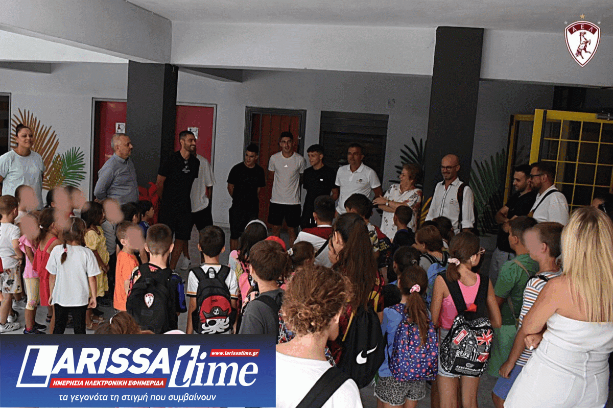 Αντιπροσωπεία ποδοσφαιριστών και στελεχών της ΠΑΕ ΑΕΛ επισκέφθηκε σήμερα το 4ο Δημοτικό Σχολείο Λάρισας, ανταποκρινόμενη στην πρόσκληση του Δήμου Λαρισαίων, στο πλαίσιο του προγράμματος «Κατασκήνωση στην Πόλη», που φιλοξενεί παιδιά ηλικίας 5 έως 14 ετών.