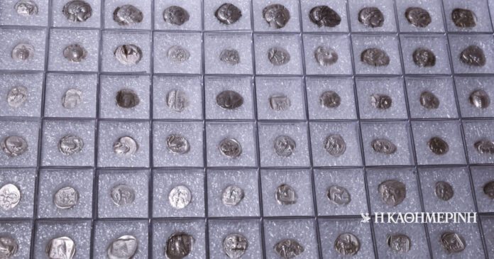 Πρόκειται για 61 αργυρούς στατήρες (δίδραχμα), κοπές πόλεων της Παμφυλίας, Κιλικίας, Ιωνίας, Κύπρου, αλλά και της Αίγινας και της Μήλου, καθώς και 994 αργυρά αθηναϊκά τετράδραχμα, μεταξύ των οποίων ένα υπόχαλκο, με χρονολογίες κοπής που κυμαίνονται από τις αρχές έως τα τέλη του 5ου αι. π.Χ.