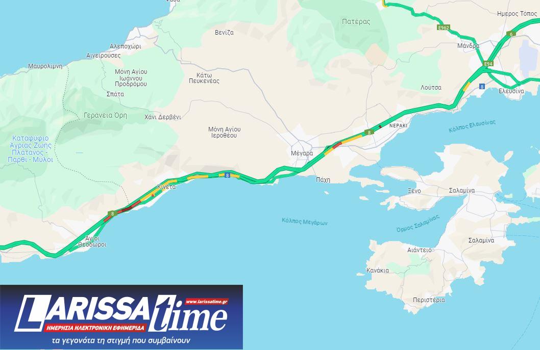Δυσκολίες εντοπίζονται και στο ύψος των Μεγάρων όπου νωρίτερα σημειώθηκε τροχαίο με σύγκρουση και την εμπλοκή 4 αυτοκινήτων.
