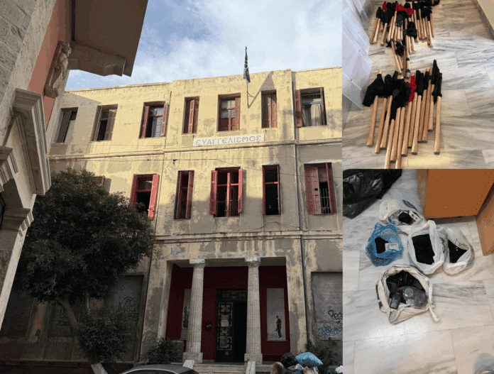 Έξω από το Αστυνομικό Μέγαρο Ηρακλείου είχαν συγκεντρωθεί νωρίτερα, περίπου 30 άτομα του αντιεξουσιαστικού χώρου, υψώνοντας πανό συμπαράστασης στους 6 συλληφθέντες και φωνάζοντας συνθήματα.