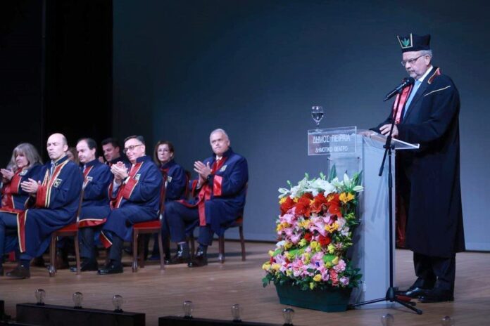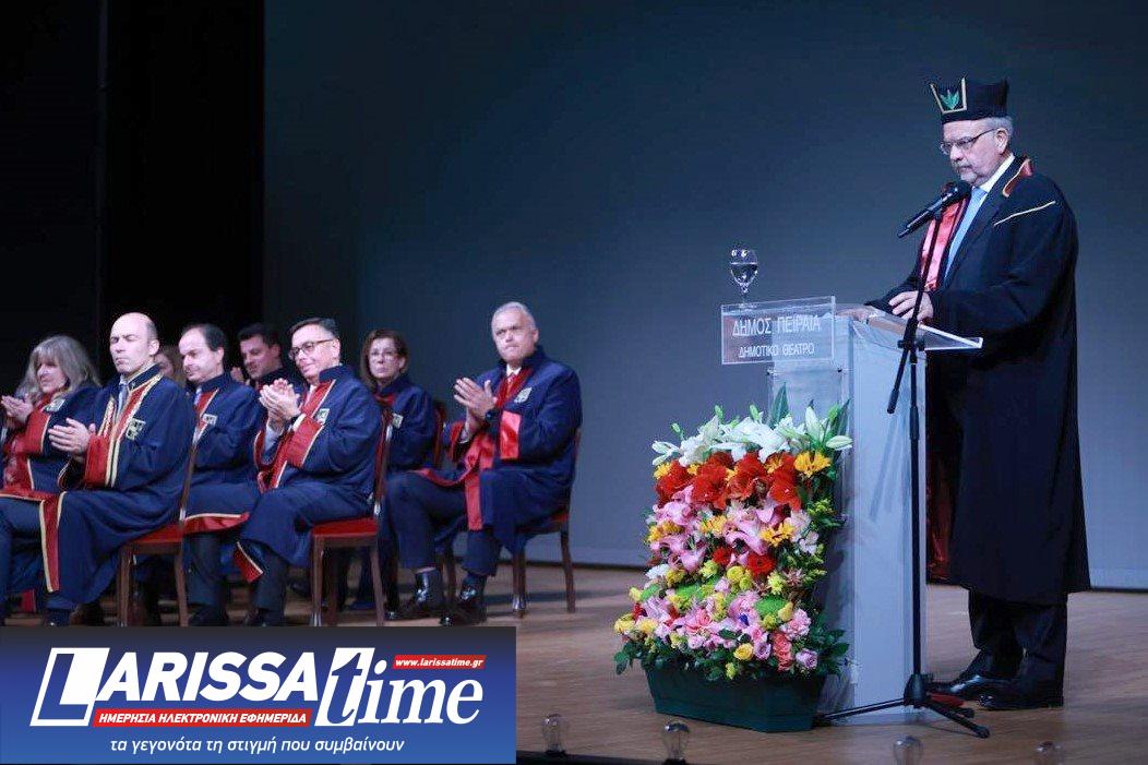 Ακολούθησε η παρουσίαση του έργου του Τιμωμένου (Laudatio) από τον Πρόεδρο του Τμήματος Οργάνωσης και Διοίκησης Επιχειρήσεων Καθηγητή Δημήτριο Γεωργακέλλο, ο οποίος τον καλωσόρισε στον κύκλο των επιτίμων διδακτόρων του Πανεπιστημίου και την ακαδημαϊκή οικογένεια και παρέθεσε την πραγματικά εντυπωσιακή διαδρομή του.