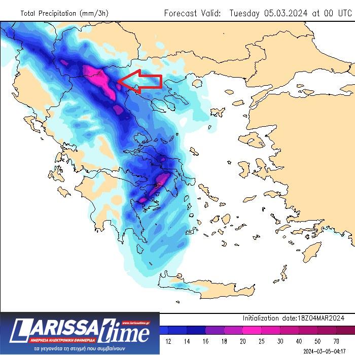 Ακολουθεί χάρτης από το μετεωρολογικό μας μοντέλο το οποίο είδε με εξαιρετική ακρίβεια τον πυρήνα καταιγίδων που άφησε προβλήματα μέσα στη νύχτα προς τη βόρεια Ελλάδα.