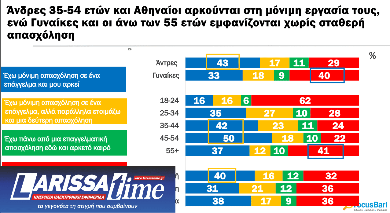 Δύο στους πέντε Έλληνες αρκούνται στη μόνιμη απασχολησή τους, ενώ πάνω από ένας στους τέσσερις είτε έχουν δεύτερη δουλειά, είτε προγραμματίζουν να κάνουν.