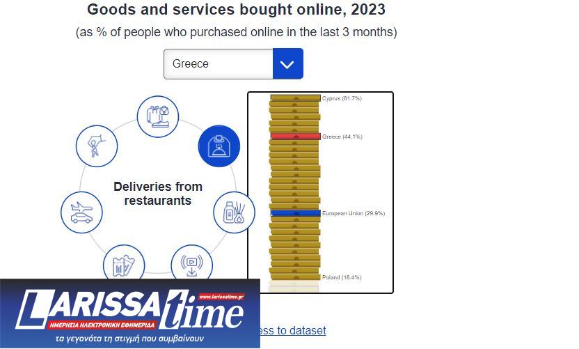 Περισσότεροι από τέσσερις στους δέκα (44,13%) έκαναν ηλεκτρονικά παραγγελίες φαγητού από εστιατόρια, αλυσίδες fast food και catering έναντι σχεδόν 30% στην ΕΕ. Και πάλι η Κύπρος έχει την πρωτοκαθεδρία στις online παραγγελίες με ποσοστό 81,7%.