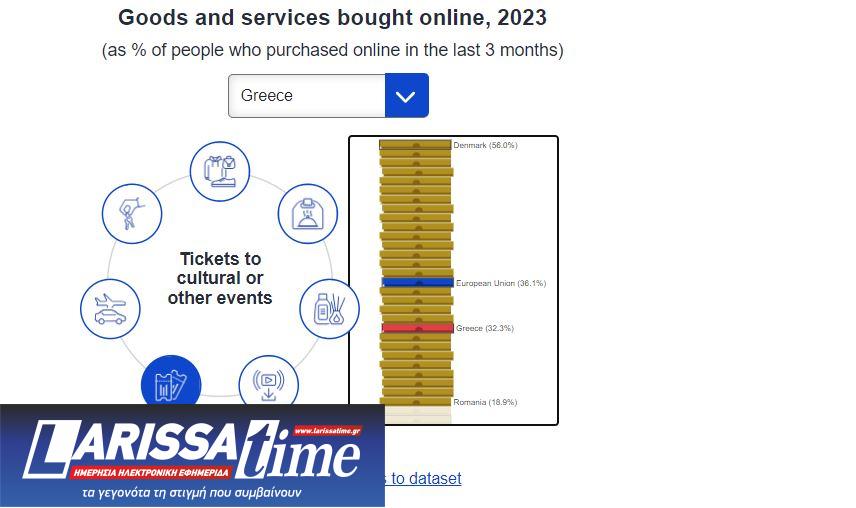 Πίσω, σε σχέση με το μέσο όρο της ΕΕ (36,1%), βρίσκεται η χώρα μας στην αγορά ηλεκτρονικών εισιτηρίων (32,25%) για πολιτιστικές ή άλλες εκδηλώσεις. Πρώτη είναι η Δανία με 56%.