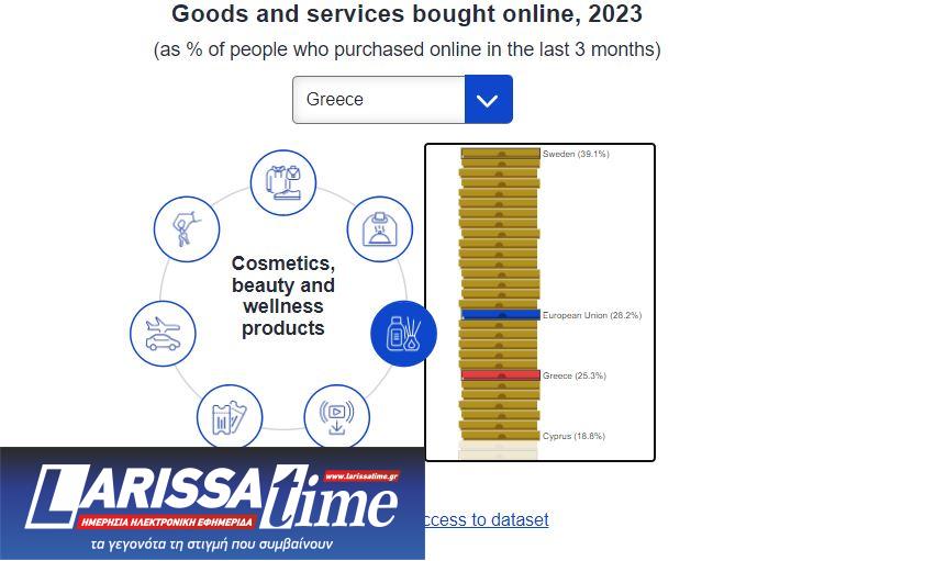 Χαμηλότερο είναι το ποσοστό και για αγορές καλλυντικών και προϊόντων ομορφιάς (25,28%) έναντι 28,24% στην ΕΕ. Πρώτη με μικρή διαφορά από τη Νορβηγία (38,5%) είναι η Σουηδία με 39,1%.