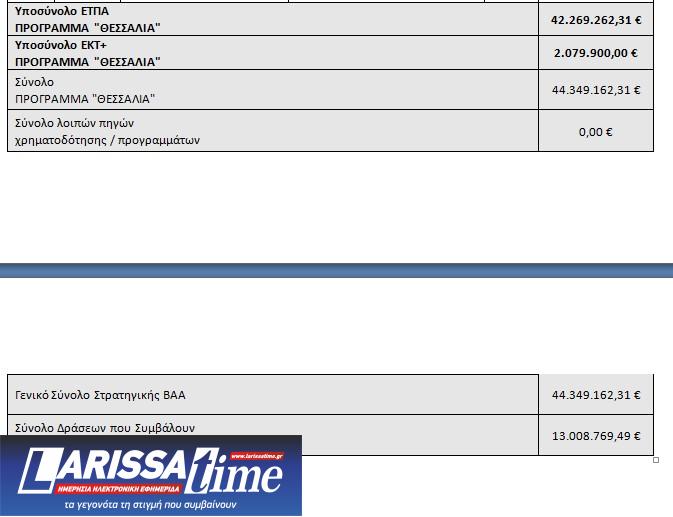 Η προισταμένη της Ειδικής Υπηρεσίας Διαχείρισης Περιφέρειας Θεσσαλίας, κ. Πολυτίμη Γραβάνη, σημείωσε ότι πολύ σημαντικό μέρος του προϋπολογισμού του προγράμματος, περίπου 17%, προορίζεται για την περιοχή της Θεσσαλίας. Αυτό που ζητούμε ως διαχειριστική αρχή είναι ο Δήμος Λαρισαίων να τηρήσουν τις δεσμεύσεις που έχουν αναλάβει. Τα έργα τους να ωριμάσουν να αποδίδουν συγκεκριμένες δαπάνες στα πρόγραμμα και φυσικά να ανταποδώσουν στους πολίτες της Λάρισας».