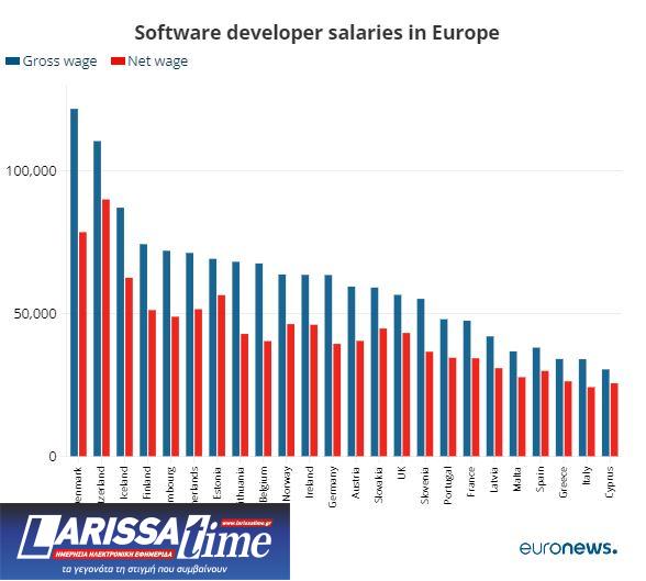 Λαμβάνοντας υπόψη το καθαρό εισόδημα, οι προγραμματιστές λογισμικού κερδίζουν τα περισσότερα στην Ελβετία (89.998 ευρώ), τη Δανία (78.516 ευρώ), την Ισλανδία (62.536 ευρώ) και την Εσθονία (56.451 ευρώ).