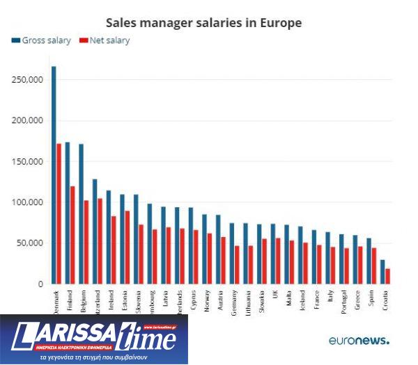 Οι διευθυντές πωλήσεων προσφέρουν σημαντικούς μισθούς στη Δανία, τη Φινλανδία, την Ελβετία και το Βέλγιο, με τον υψηλότερο μέσο καθαρό μισθό να φτάνει τα 171.781 ευρώ στη Δανία – δηλαδή πάνω από 14.000 ευρώ το μήνα.