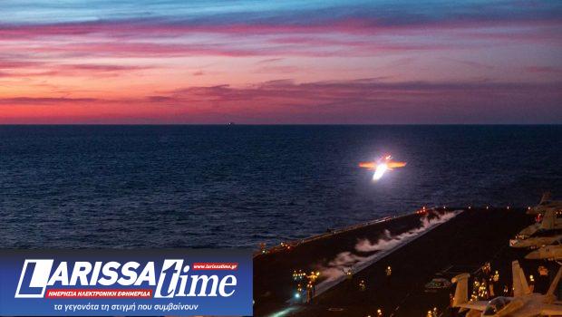 Ανακοίνωση που εξέδωσε σήμερα η Κεντρική Διοίκηση των ΗΠΑ – CENTCOM και βλέπετε στην κεντρική μας εικόνα, έδειχνε το USS Harry Truman μαζί με τη λεζάντα: «Ένα F/A-18E Super Hornet, που ανήκει στην Strike Fighter Squadron (VFA) 81 (ο κωδικός του αεροπλανοφόρου και των συνοδευτικών πλοίων), εκτοξεύεται από το κατάστρωμα πτήσης του αεροπλανοφόρου κλάσης Nimitz USS Harry S. Truman (CVN 75) στην περιοχή ευθύνης της Κεντρικής Διοίκησης των ΗΠΑ».