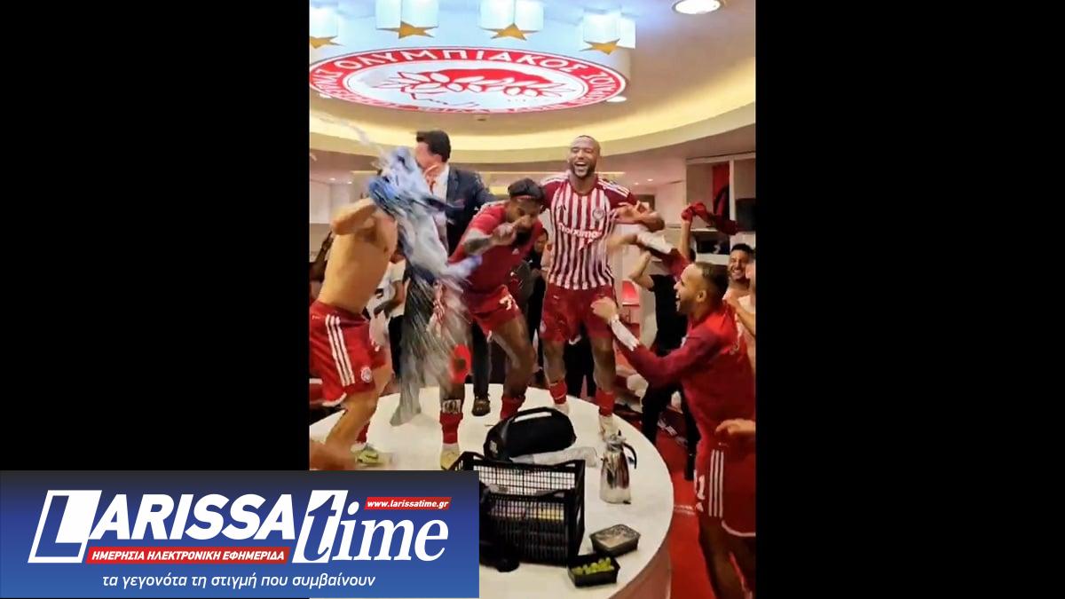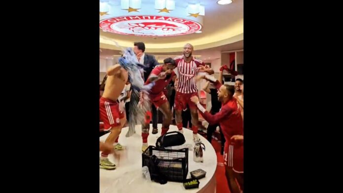 Οι παίκτες του «ερυθρόλευκων» ξεσάλωσαν στα αποδυτήρια γιορτάζοντας με την ψυχή τους, αυτή πολύ μεγάλη στιγμή για τον σύλλογο.