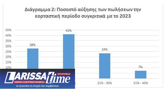 2. Σημειώνεται πως για 4 στις 10 επιχειρήσεις με βελτιωμένες πωλήσεις, η εν λόγω αύξηση διαμορφώθηκε από 11% έως 20% (Διάγραμμα 2). Αντίθετα, στις επιχειρήσεις με μειωμένες πωλήσεις σε σχέση με πέρυσι, το 52% αυτών εμφανίζει υποχώρηση χαμηλότερη του 10%.