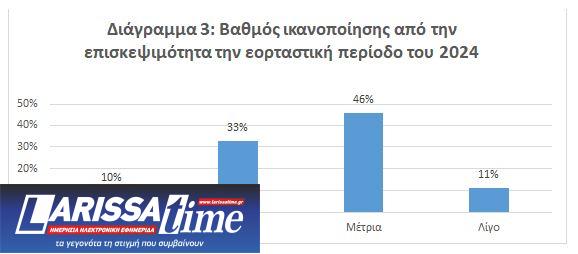 3. Τέσσερις στις 10 επιχειρήσεις (43%) εμφανίζονται από πολύ/ έως και πάρα πολύ ικανοποιημένες από την επισκεψιμότητα στα καταστήματα, ενώ περίπου οι μισές (46%) παρουσιάζονται μέτρια ικανοποιημένες (Διάγραμμα 3).