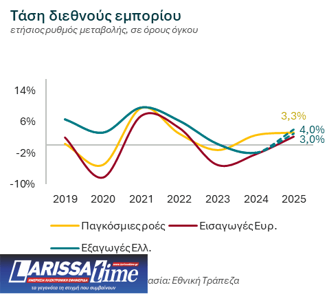 – Η διεθνής ζήτηση αναμένεται να παραμείνει υγιής, με εκτιμώμενη άνοδο της τάξης του 3% στον όγκο διεθνούς εμπορίου (έναντι 2,7% το 2024). Έτοιμα να αξιοποιήσουν τη διεθνή τάση εμφανίζονται τα ελληνικά προϊόντα, καθώς ο δείκτης εξαγωγικών παραγγελιών καταγράφει βελτίωση για 3ο συνεχόμενο μήνα ξεχωρίζοντας από την αναιμική εικόνα των ευρωπαίων ανταγωνιστών.