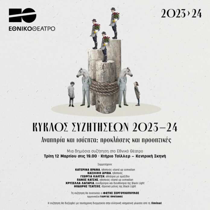 Με τη δημόσια συζήτηση με θέμα «Αναπηρία και ισότητα: προκλήσεις και προοπτικές», που αναβλήθηκε λόγω της απεργίας της ΑΔΕΔΥ στις 20 Φεβρουαρίου, συνεχίζεται την Τρίτη 12 Μαρτίου στις 19.00 ο κύκλος συζητήσεων που άνοιξε το Εθνικό Θέατρο πάνω σε φλέγοντα ζητήματα που απασχολούν την κοινωνία. Η συζήτηση θα πραγματοποιηθεί στην Κεντρική Σκηνή, στο κτήριο Τσίλλερ.